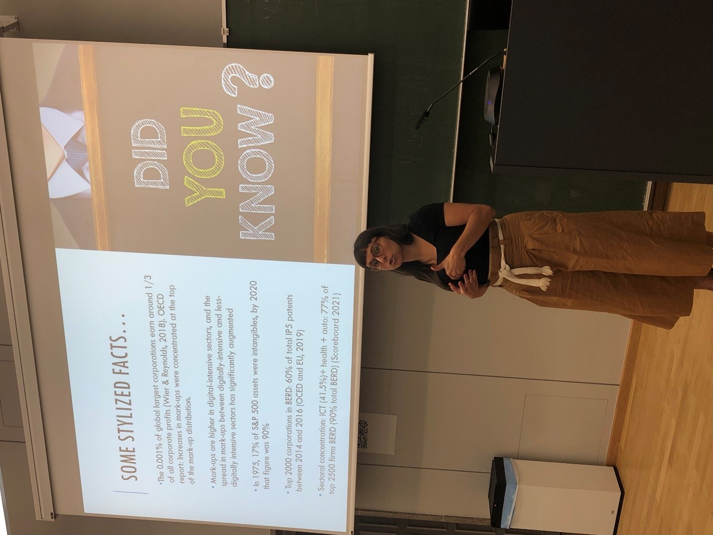 Was kann also getan werden, um IMs zu regulieren? Rikap weist darauf hin, dass Europa bisher einer der einzigen Orte ist, an dem versucht wurde, Big Tech mit dem Gesetz über digitale Märkte zu bekämpfen. Diese greifen jedoch zu kurz, weil diese Gesetze Daten nicht als relationale Daten verstehen - es geht vielmehr um die Zentralisierung und Analyse von Daten und nicht darum, ob eine Person auf vielen verschiedenen Websites auf "nicht einverstanden" geklickt hat. Sie schlägt vor, sich auf praktikable Lösungen zu konzentrieren: Vorschläge wie die Schaffung eines gemeinsamen Wissensregimes mögen zwar verlockend sein, sind aber angesichts dessen, was wir über die Logik der IM wissen, utopisch. Eine einfachere Möglichkeit wäre der Verzicht auf geistige Eigentumsrechte für Wissen, das dazu beitragen kann, die größten Härten zu mildern (wie der COVID-Impfstoff). Ein weiterer zentraler Punkt ist die Bedeutung der Besteuerung der digitalen Datenbanken der IM, da diese eine wichtige Quelle für digitales Wissen darstellen. Für die Zuhörer des Vortrags war eine der wichtigsten Erkenntnisse, dass die Annahmen über Wirtschafts- und Innovationssysteme, die sich im Zeitalter der geistigen Monopole rasch verändern, überdacht werden müssen.