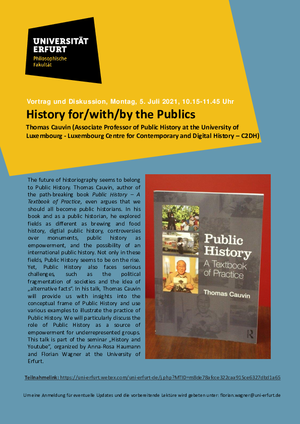 History for/with/by the Publics, Vortrag von Thomas Cauvin (Associate Professor of Public History at the University of Luxembourg)