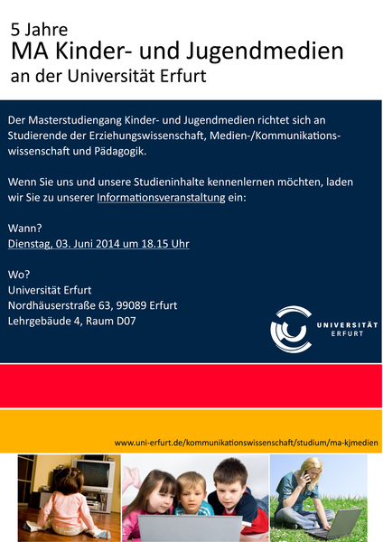 Die Informationsveranstaltung findet am Dienstag, 03. Juni 2014 um 18.15 Uhr in Lehrgebäude 4, Raum D07. Im Anschluss bleibt Ihnen also noch über ein Monat bis zum Ende der Bewerbungsfrist für das kommende Wintersemester am 15. Juli. Wir freuen uns
