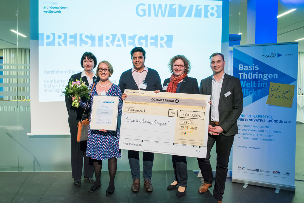 Neben dem „Sharing Living Project“ waren zwei weitere Projekte von Studierenden der Uni Erfurt ins Rennen gegangen: „Impact“ und „Opportunity4me“. Sie wurden mit einem individuellen Coaching zur Geschäftsmodellentwicklung belohnt.