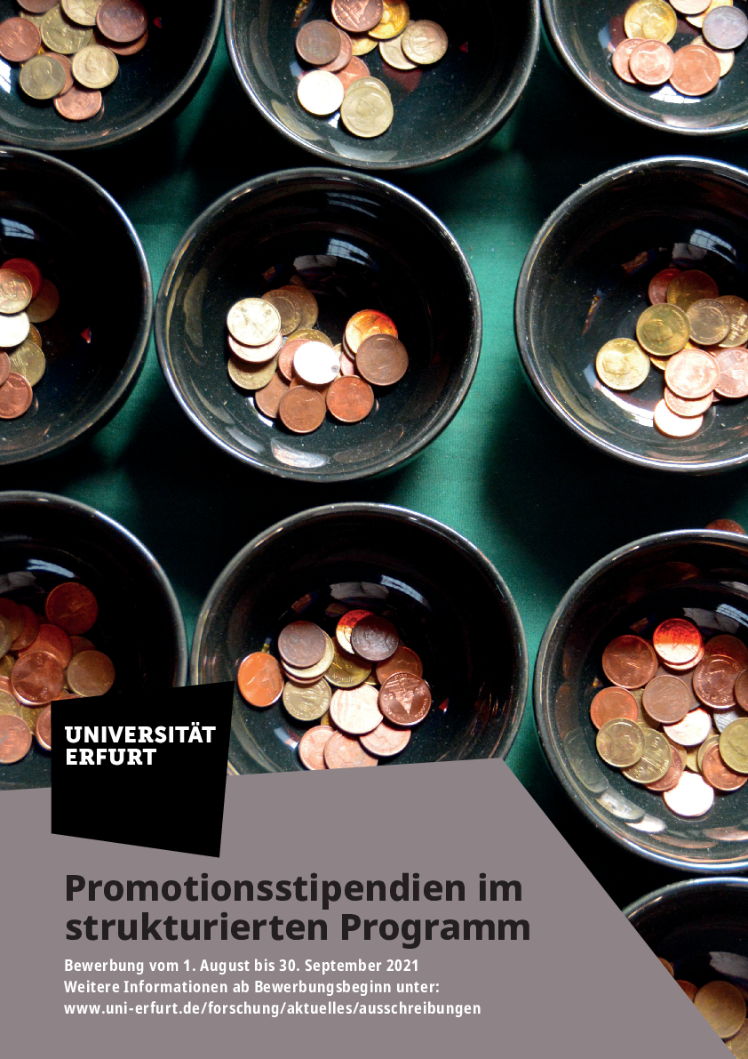 Ausführliche Informationen zur Ausschreibung, den Fördervoraussetzungen und einzureichenden Bewerbungsunterlagen finden Sie auf der Website der Universität Erfurt: www.uni-erfurt.de/forschung/aktuelles/ausschreibungen.