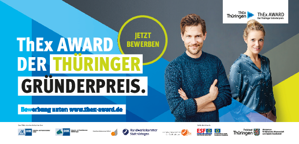 Sie haben eine besondere Geschäftsidee und bereiten gerade Ihre Gründung vor? Oder sind Sie bereits gestartet und haben Ihre Idee umgesetzt? Dann bewerben Sie sich jetzt als IDEENHABER um den ThEx AWARD!