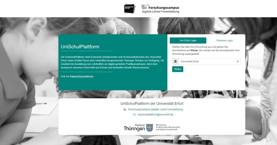 Die UniSchulPlattform unterscheidet sich damit von anderen Lernplattformen wie z.B. der Thüringer Schulcloud, deren Hauptauftrag die digitale Versorgung der Schulen ist. Klar, dass auch das Thema Datenschutz eine wichtige Rolle bei der Entwicklung gespielt hat: Die Plattform ist datenschutzrechtlich geprüft und durch eine Datenschutzerklärung gesichert. Serverstandort ist Deutschland, die Website wird von der Universität Erfurt gehostet."Mit der UniSchulPlattform stellt die Uni Erfurt nun eine Lernplattform für Forschungsprojekte und die Ausbildung von Lehrkräften für den digital gestützten Unterricht bereit", erklärt Stefanie Schettler-Schlag vom Projektteam. "Damit vernetzen wir die Lernorte Universität und Schule und verbessern vor allem auch den Transfer neuer Erkenntnisse aus der digitalen Lehr-Lernforschung in die Lehrer*innenbildung."
