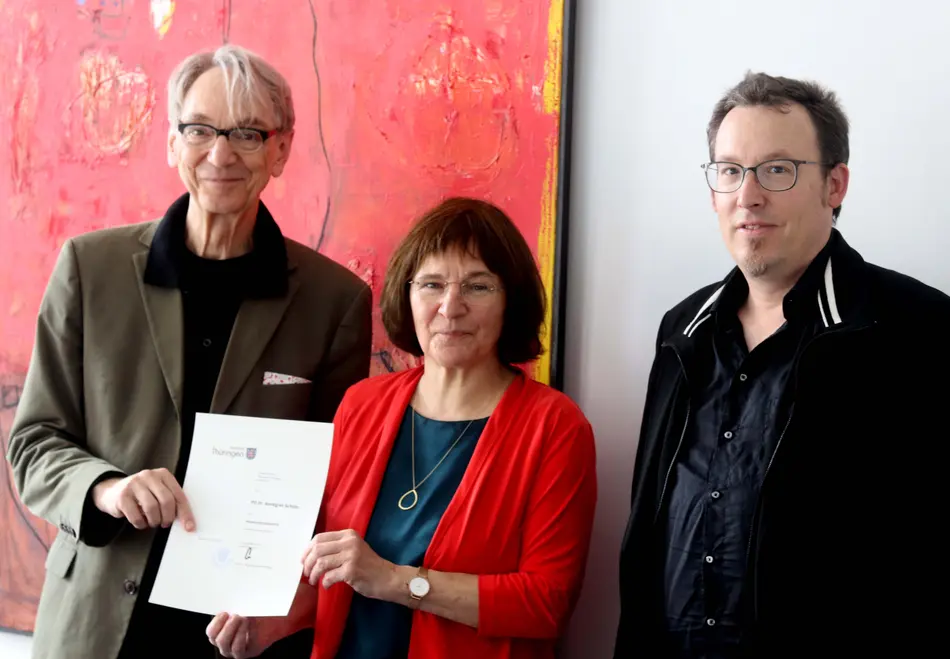 PD Dr. Annegret Schüle mit Prof. Dr. Walter Bauer-Wabnegg (l.) und Prof. Dr. Sven Jöckel bei der Übergabe der Ernennungsurkunde