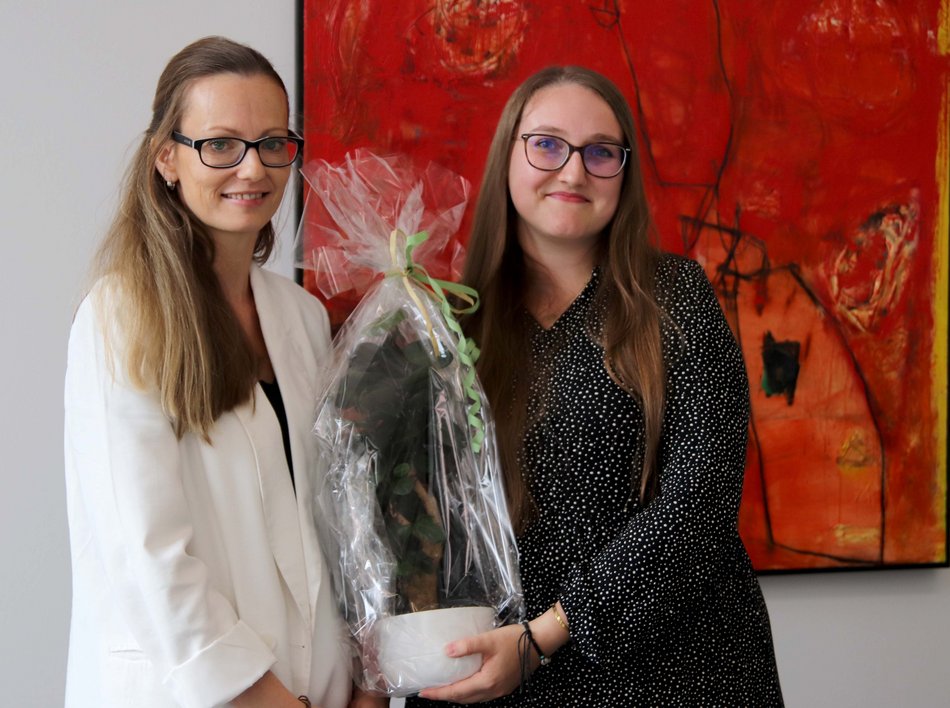 In einer kleinen Feierstunde würdigte die Universität die Leistung ihrer Auszubildenden. Anne Höhlein hatte ihre Ausbildung zur Verwaltungsfachangestellten im September 2020 begonnen. Dabei lernte sie die Dezernate der Hochschule kennen – und damit das breite Spektrum der Aufgaben einer Hochschulverwaltung von Arbeitsorganisation über bürowirtschaftliche Abläufe, Personalwesen, Haushaltswesen, Rechnungswesen, Sicherheit und Gesundheitsschutz bei der Arbeit bis hin zum Thema Beschaffung. "Wir freuen uns, dass uns Anne Höhlein im Anschluss an ihre Ausbildung erhalten bleiben wird", erklärte Susan Brand, die Ausbildungsverantwortliche der Universität Erfurt. Künftig werde sie im Sekretariat an der Philosophischen Fakultät beschäftigt sein.