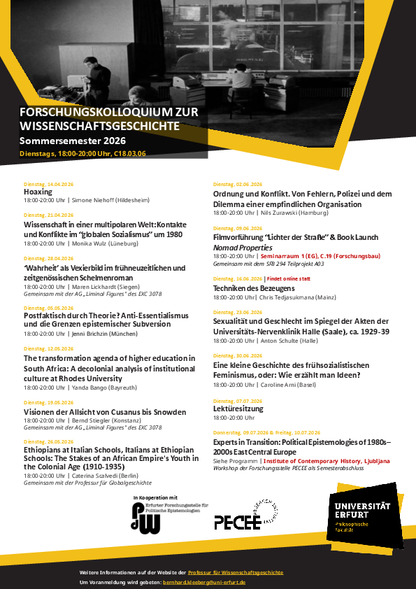 Forschungskolloquium zur Wissenschaftsgeschichte, SoSe 2026