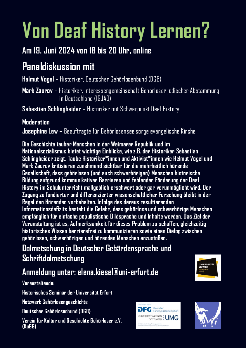 Die Veranstaltung wird in Kooperation mit dem Verein KuGG – Kultur und Geschichte Gehörloser organisiert.