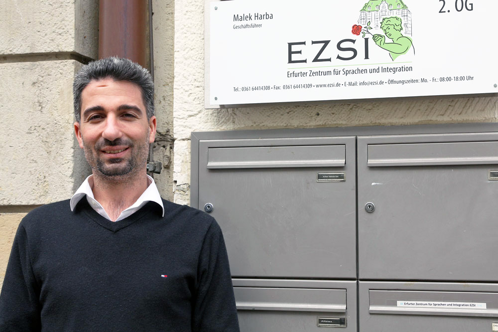 Aktuell befindet sich seine Doktorarbeit in der Abschlussphase und der 41-Jährige ist Gründer, Leiter und Inhaber des Erfurter Zentrums für Sprachen und Integration. Wie es dazu kam? "Bereits seit vielen Jahren habe ich Flüchtlingen ehrenamtlich geholfen. Zuletzt war ich an einer Erfurter Sprachenschule tätig. Denn die Sprache ist der Schlüssel zur Integration. Aus dieser Tätigkeit heraus ist die Idee entstanden, das EZSI zu gründen“, erzählt er. Die ersten Planungen begann das dreiköpfige Team – bestehend aus Malek Harba, seiner Frau Julia und Hannes Beecken, der bereits Gründungserfahrung mitbrachte – im August 2016. Im Januar dieses Jahres mieteten sie Räumlichkeiten am Anger an. Finanzielle Unterstützung erhielt das Team größtenteils von privaten Unterstützern und Freunden. Die größte Herausforderung stand jedoch noch bevor: "Die Zertifizierung mit allen bürokratischen Hürden und das Audit waren das Schwierigste an der Gründung. Deswegen bin ich sehr stolz, dass wir die notwendigen Zertifikate endlich in der Hand halten dürfen.“