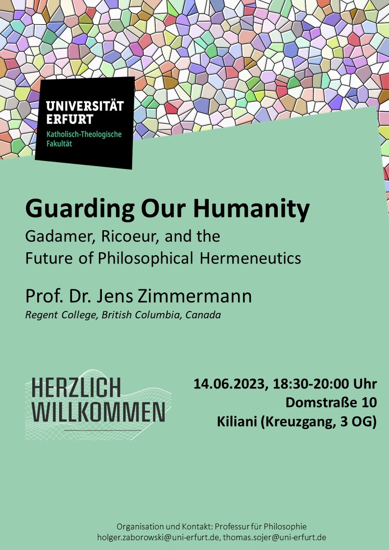 Vortrag: "Guarding Our Humanity. Gadamer, Ricoeur, and the Future of Philosophical Hermeneutics" von Prof. Dr. Jens Zimmermann