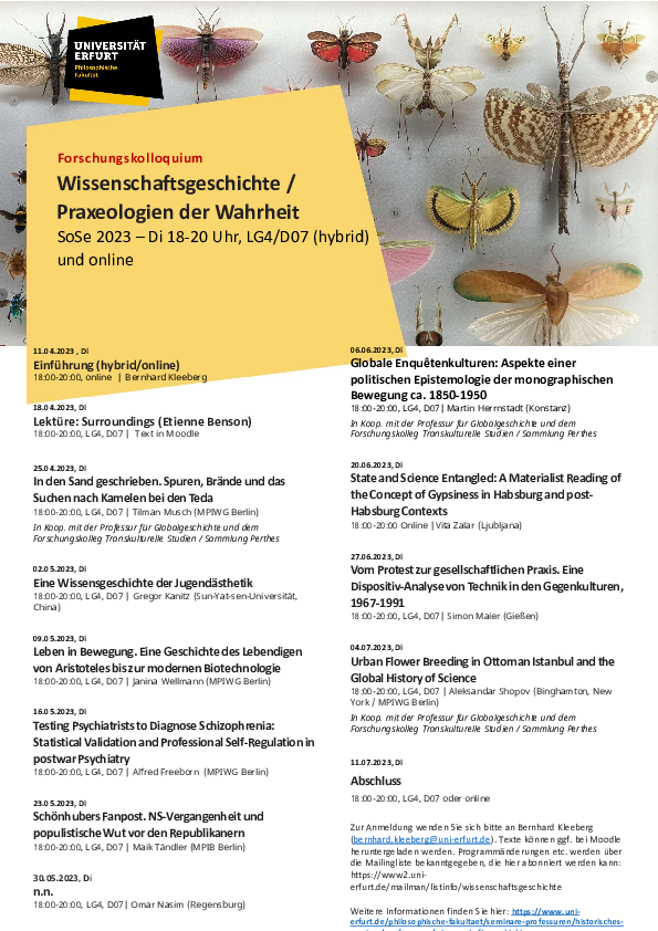 Programmänderungen und weitere Veranstaltungshinweise etc. werden über die Mailingliste bekanntgegeben, die hier abonniert werden kann.