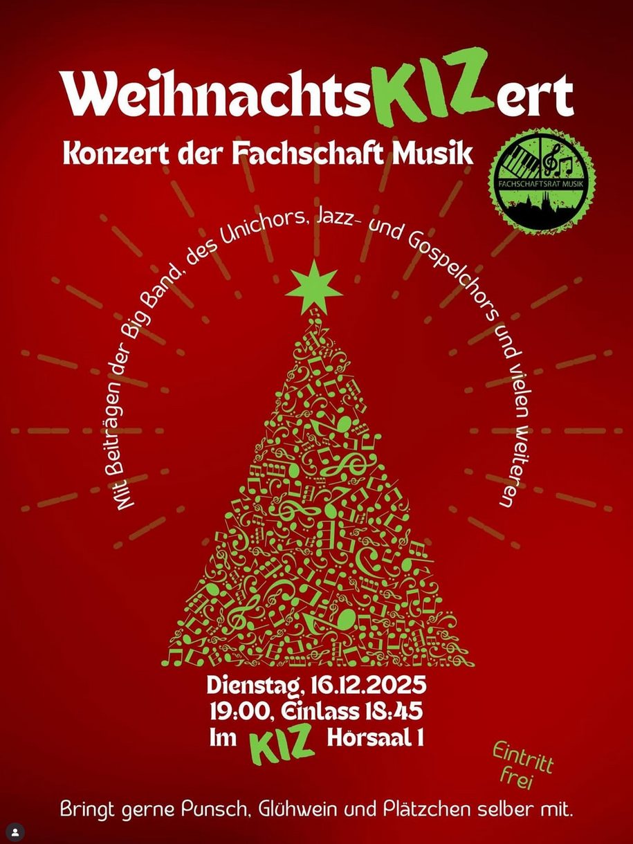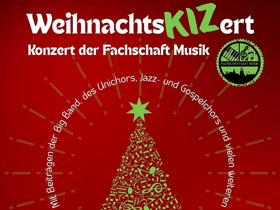 Die Fachschaft Musik lädt zum traditionellen Weihnachtskonzert auf dem Campus ein. Das Konzert findet erstmals im KIZ (Gebäude C21) statt. Einlass ist bereits um 18.45 Uhr. der Eintritt ist frei.