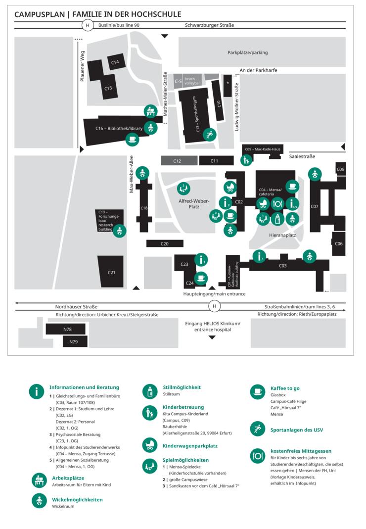 Unser Campusplan für Familien mit allen relevanten Anlaufstellen und Orten: