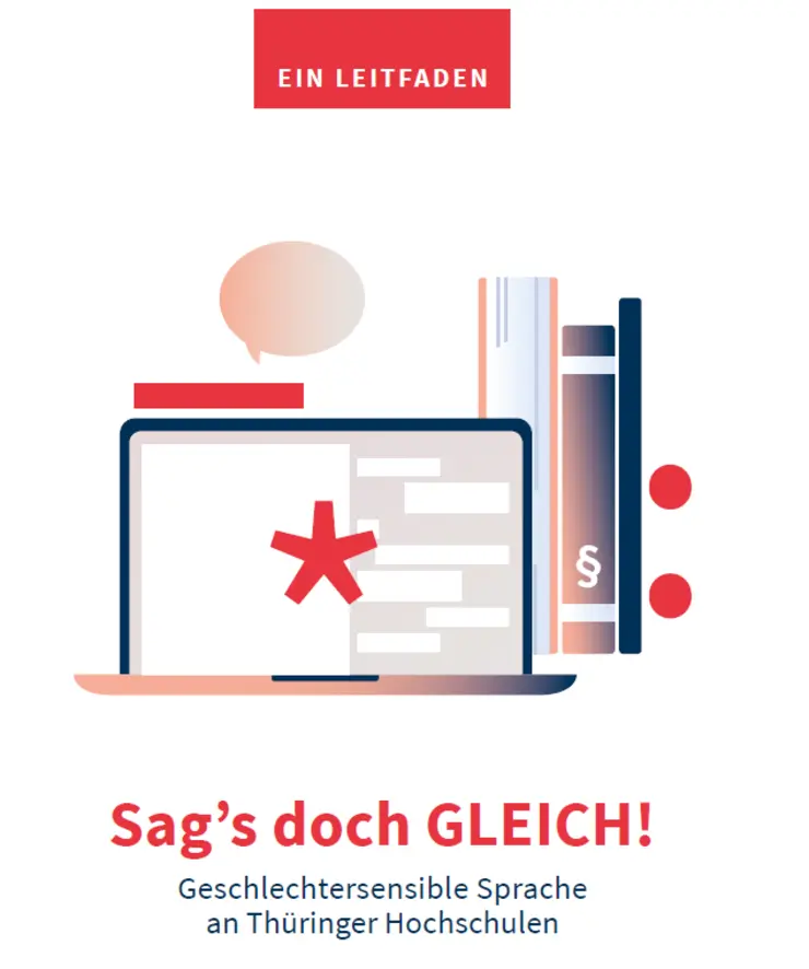 Das Thüringer Kompetenznetzwerk Gleichstellung hat im Juli 2023 eine völlig überarbeitete Neuauflage des Sprachleitfadens Sag’s doch GLEICH! Gendersensible Sprache an Thüringer Hochschulen veröffentlicht.