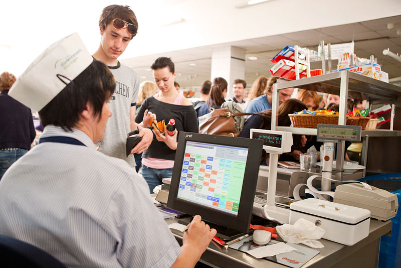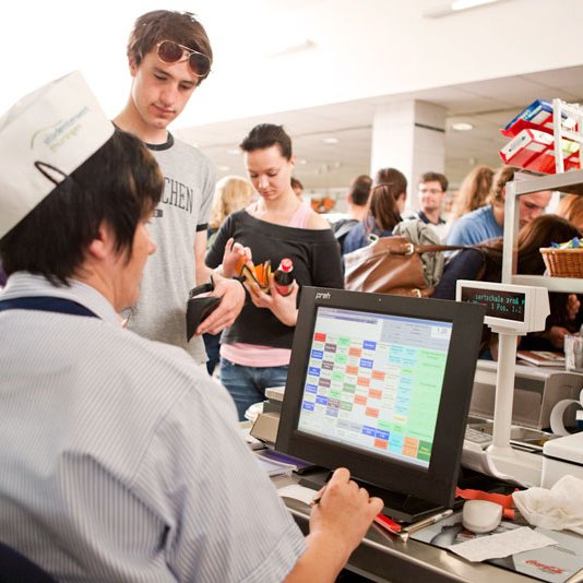 Direkt gegenüber der Staatswissenschaftlichen Fakultät liegt am Hieranaplatz das Mensa-Gebäude. Hier versorgt das Studierendenwerk Thüringen täglich Studierende, Beschäftige und Gäste der Universität Erfurt mit Essen. Werfen Sie einen Blick in den aktuellen Speiseplan! Achtung, die Bezahlung in der Mensa ist nur mit thoska (oder EC-Karte zum Gastpreis) möglich.