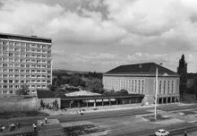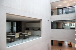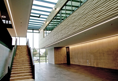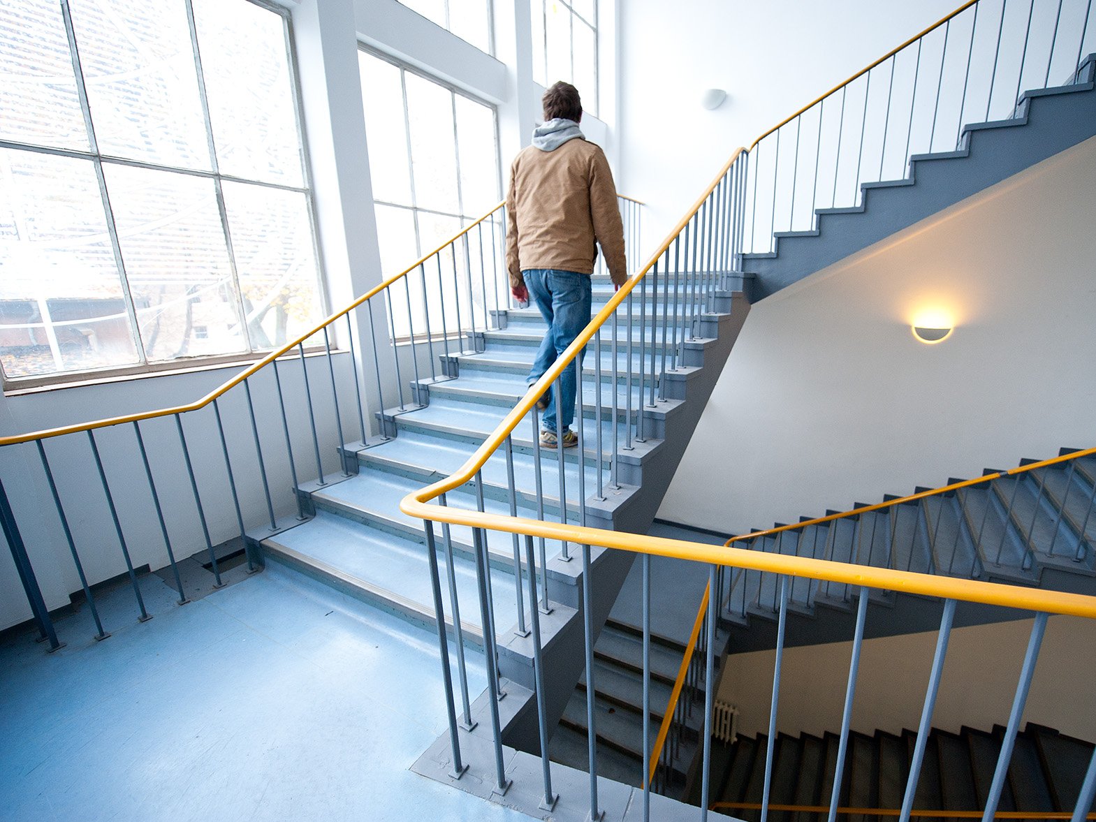 Fact: Ursprünglich hatte das zwischen 1958 und 1962 errichtetet Gebäude unter anderem die Fächer Mathematik und Physik aufgenommen. Die über mehrere Geschosse gehenden Glasfenster im Treppenhaus verweisen darauf.