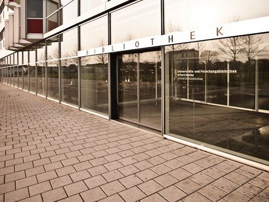 Als „zentrales Labor der Geisteswissenschaften“ wurde die Universitätsbibliothek Erfurt im Jahr 2000 eröffnet. Ihre Bestände erstrecken sich über 750.000 Bände in Freihandregalen und 400.000 Bände in den Magazinregalen. Die Universitätsbibliothek vereint Medien aller Fachgebiete unter einem Dach und bietet ausreichend Platz zum Lesen und Arbeiten.