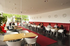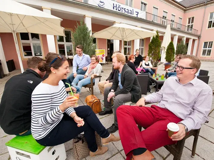 Außerdem im Verwaltungsgebäude: das Café „Hörsaal 7“, das vom Studierendenwerk betrieben wird – ein gemütlicher Ort, der bei Studierenden und Beschäftigten gleichermaßen beliebt ist.