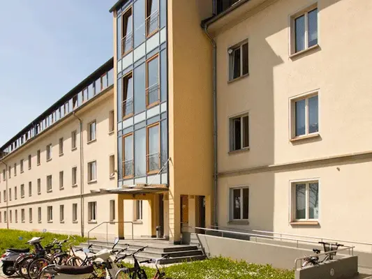 Im Nachbarhaus unmittelbar an das Forschungszentrum Gotha angeschlossen ist das Stipendiatenhaus. Es bietet Gastwissenschaftler*innen und Stipendiat*innen während ihres Forschungsaufenthaltes auf dem Forschungscampus Gotha ein Zuhause auf Zeit.