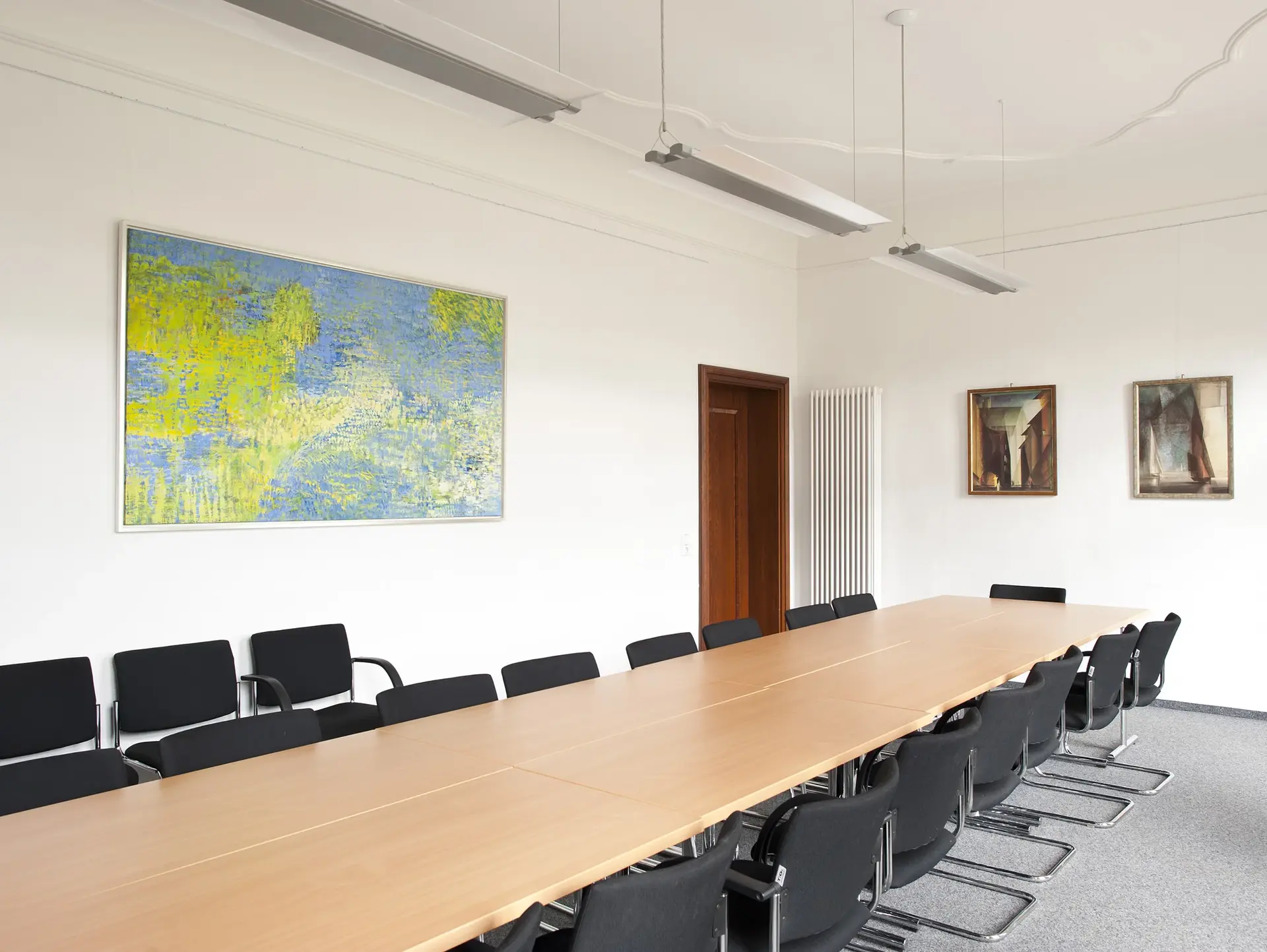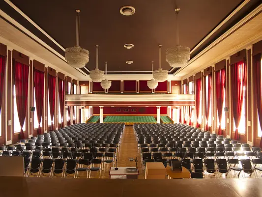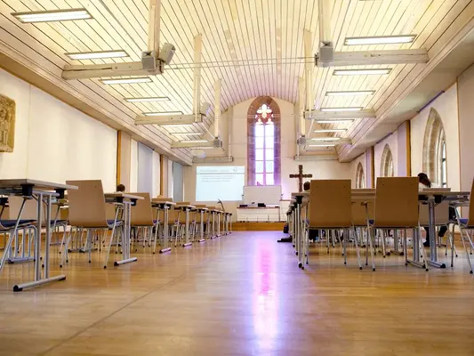 Im Erdgeschoss sind zwei größere Veranstaltungsräume entstanden, in den Obergeschossen weitere kleine Besprechungsräume.