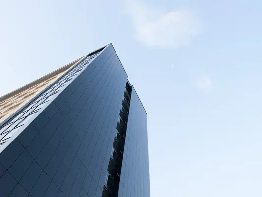 Das Hochhaus am Haupteingang der Universität Erfurt ist ein Mitarbeitergebäude. Dort befinden sich die Erfurt School of Education (ESE), Büros verschiedener an der Philosophischen Fakultät angesiedelter Professuren, das BAföG-Amt und weitere Beratungsstellen des Studierendenwerks Thüringen sowie der Senatssaal.
