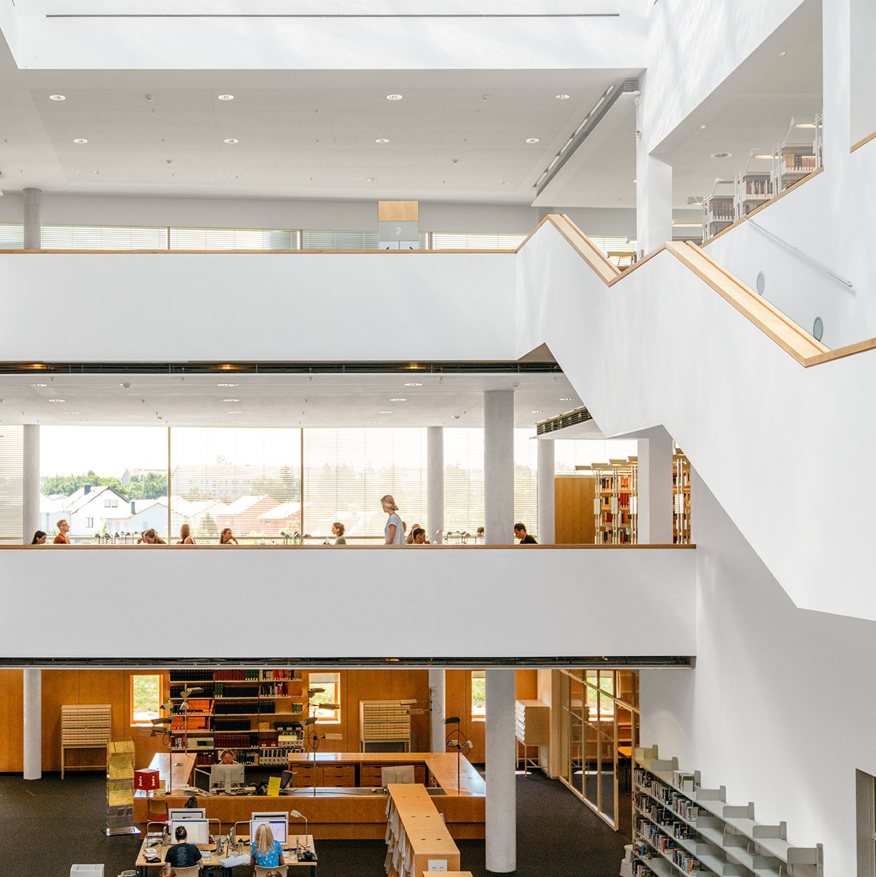 Der große Lesesaal der Universitätsbibliothek steht für alle Bibliotheksbesucher*innen offen und ermöglicht das Arbeiten mit den Beständen vor Ort. Für Bibliotheksnutzer*innen und Universitätsangehörige stehen darüber hinaus 360 Benutzerarbeitsplätze mit PC bzw. WLAN-Zugriff und 18 Carrels zur Verfügung. Arbeitsplätze mit Tischsteckdosen ermöglichen darüber hinaus auch das mobile Arbeiten. Das Bibliotheksgebäude beherbergt zudem fünf Gruppenarbeitsräume, einen Vortragsraum, die Mediothek, den Ausstellungsraum sowie einen Sonderlesesaal.