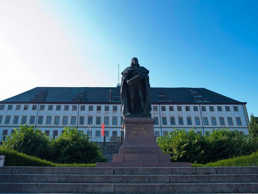 Neben ihrem Campus in Erfurt unterhält die Universität auch einen kleinen Forschungscampus im 25 Kilometer entfernten Gotha. Hier ist neben der Forschungsbibliothek im barocken Schloss Friedenstein vor allem historische Forschung beheimatet – im Forschungszentrum Gotha und im Forschungskolleg „Transkulturelle Studien / Sammlung Perthes“. Die hier beschäftigten Wissenschaftler*innen erforschen die außergewöhnlichen Gothaer Bestände und machen sie auch international sichtbar.