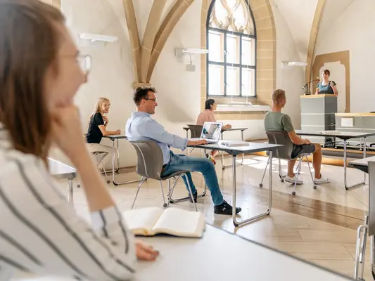 Die Lehrgebäude der Katholisch-Theologischen Fakultät befinden sich im Dom-Ensemble in der Erfurter Altstadt und bieten eine ganz besondere Atmosphäre zum Lernen und Arbeiten. In den Vorlesungs- und Seminarräumen hat schon Martin Luther gesessen, der seinerzeit in Erfurt für sein Studium der Freien Künste lebte.