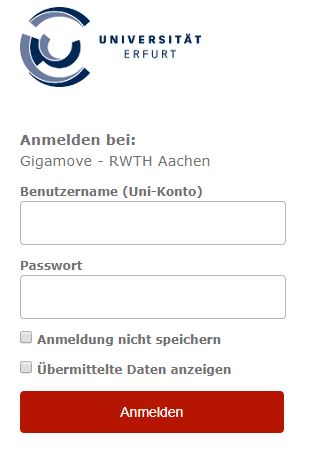 Gigamoveist ein Dienst (der RWTH Aachen) zum Austausch großer Dateien. Sie melden sich mit Ihrem Uni-Login an und können dort Dateien bis 100 GB hochladen. Der Tauschpartner erhält von Ihnen eine E-Mail mit dem Link zum Abholen.
