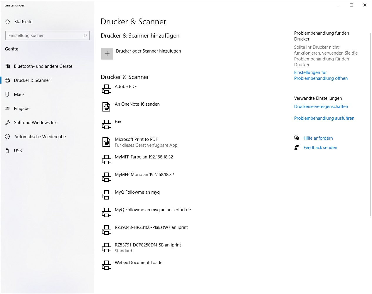 - Die Druckaufträge werden nach Ausdruck auf dem Druckserver gelöscht. Nicht abgeholte Druckaufträge werden spätestens nach 12 Stunden auf dem Server gelöscht und stehen am kommenden Arbeitstag nicht mehr zum Ausdruck bereit. Ein nochmaliger Druck muss bei Bedarf erfolgen.