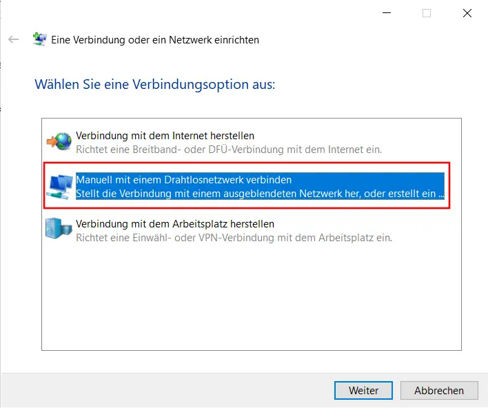 - Hier wählen Sie dann Manuell mit einem Drahtlosnetzwerk verbinden aus (Bild 4)