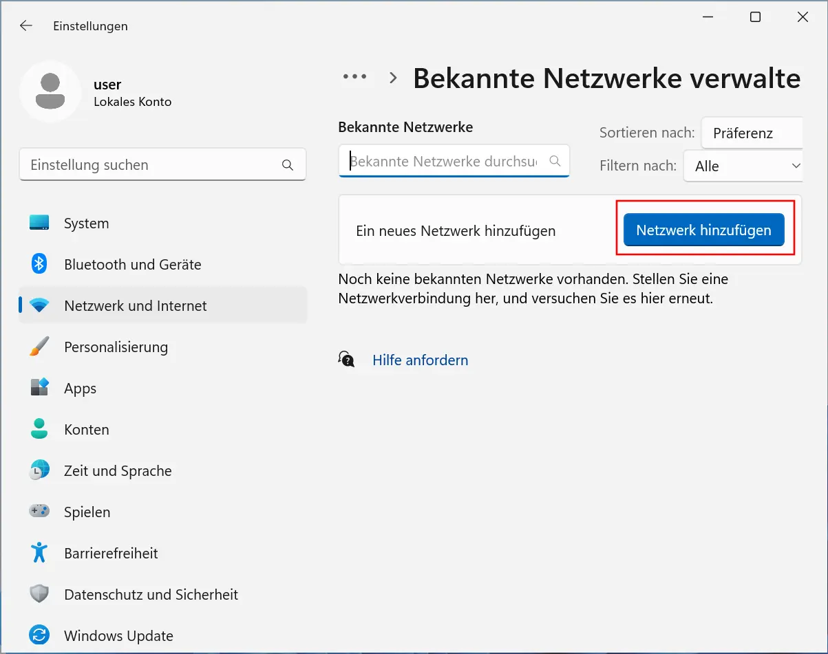 - Klicken Sie auf den Button Netzwerk hinzufügen (Bild 4)
